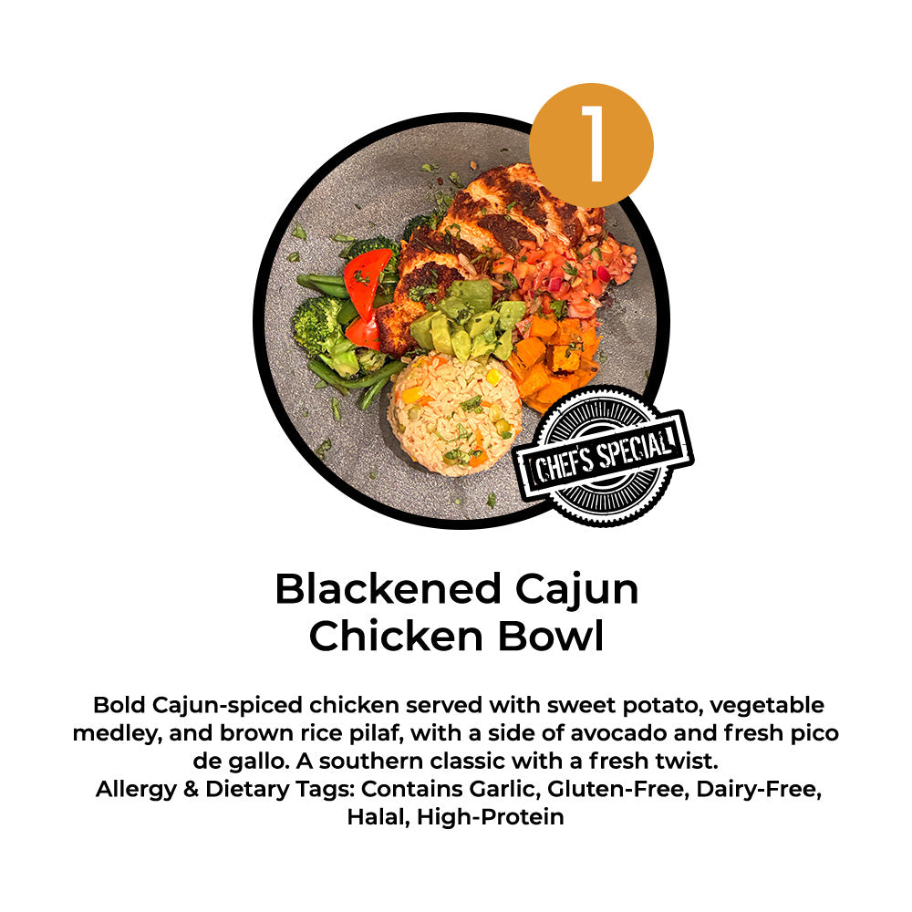 🍳 Made From Scratch, Every Time - House jerk marinades, Cajun blackening rubs, Thai coconut bases, hand-mixed sauces. No frozen bases, no shortcuts. Our chefs season, roast, and finish every component for homestyle taste you won’t get from mass-made meals.